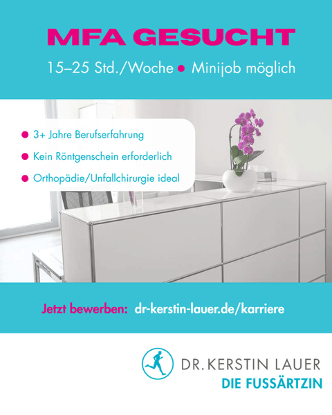 Wir suchen ab sofort eine Medizinische Fachangestellte mit mindestens 3 Jahren Berufserfahrung – idealerweise aus Orthopädie/Unfallchirurgie.